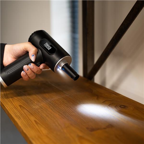 Kompresor Teesa daje Ci pełną kontrolę. Dzięki trzem poziomom nadmuchu z łatwością dopasujesz siłę pracy do zadania - od precyzyjnego oczyszczania klawiatury, po intensywne wydmuchiwanie kurzu z zakamarków – jedno urządzenie, wiele możliwości.