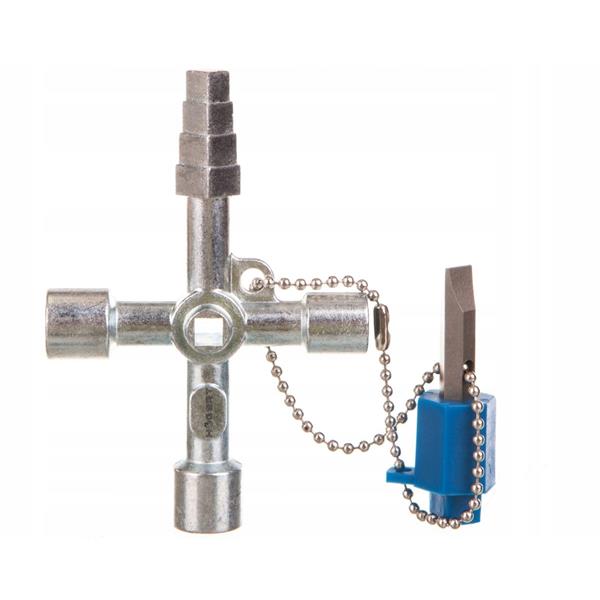 Kluczyk do szaf rozdzielczych gazowych, wodnych i elektrycznych. Przydatny także przy klimatyzacji, wentylacji i tablicach rozdzielczych. Umożliwia dostęp do szaf przy różnorodnych systemach zamknięć.