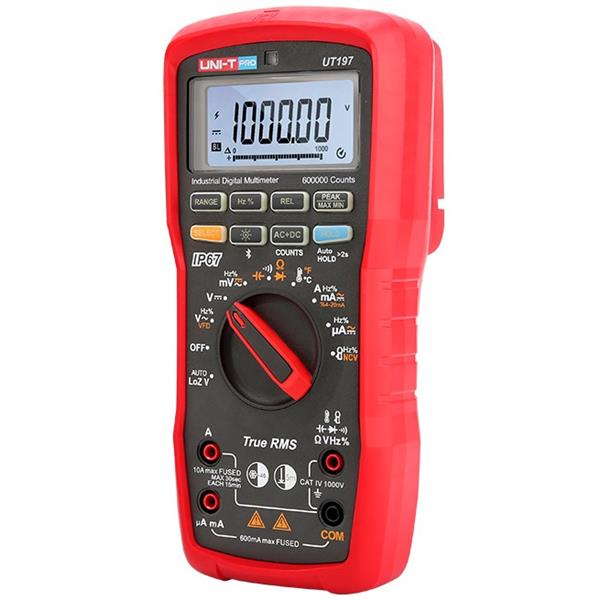 Urządzenie wykonuje precyzyjne pomiary rezystancji, pojemności oraz częstotliwości, a dodatkowo posiada funkcję pomiaru temperatury (-40°C – 1000°C). Konstrukcja IP67 zapewnia odporność na wodę i pył, a wytrzymałość na upadki z wysokości do 5m czyni multimetr idealnym do użytku w trudnych warunkach przemysłowych. Wbudowany moduł Bluetooth pozwala na przesyłanie danych w czasie rzeczywistym, a automatyczne zatrzymywanie danych oraz pomiar wartości MAX/MIN zwiększają komfort pracy. Dzięki kategorii bezpieczeństwa CAT IV 1000V, UT197 sprawdzi się zarówno w zastosowaniach warsztatowych, jak i serwisowych.