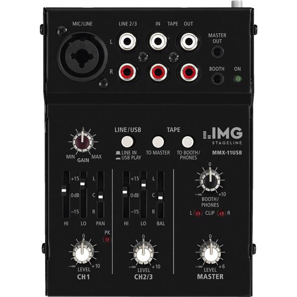 1 kanał wejściowy mono, z regulacją wzmocnienia, 2-punktowym korektorem, regulatorem panoramy i wskaźnikiem szczytu