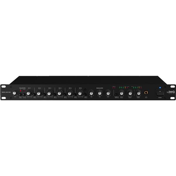 6 liniowych wejść stereo, 6 symetrycznych wejść mikrofonowych mono, przełączanych