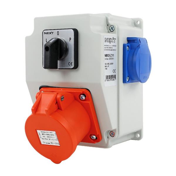 Zestaw siłowy NBOX-Z.11 1x16A 5P 2x230V wyłącznik L-0-P 3767911 Next. Popularny ZS natynkowy wyposażony w łącznik krzywkowy L-0-P, 1 gniazdo 5P 16A oraz 2 gniazdo 230V. Zestaw 3767911 wykonany jest z ABS, w kolorze szarym. Stopień szczelności zestawu siłowego NBOX-Z.11 Next to IP44. Przeznaczony jest do pracy z napięciem 400V. Zestaw NBOX-Z.11 ma wymiary 120x170x110mm (wymiary dotyczą obudowy bez gniazd).