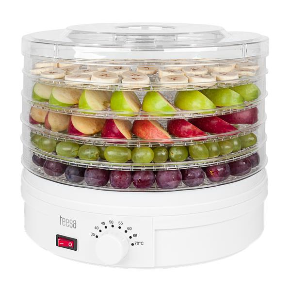 Suszarka TSA3030 została wyposażona w pięć sit o średnicy 32 cm, które pozwolą na suszenie nawet 5 kilogramów żywności. Teraz, niezależnie od pory roku, możesz cieszyć się dawką naturalnych witamin lub zaskoczyć znajomych zdrową przekąską podczas wspólnych spotkań.