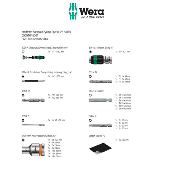 Zestaw narzędzi Wera 05051045001 zapakowany jest w praktyczny i trwały pokrowiec z materiału.
